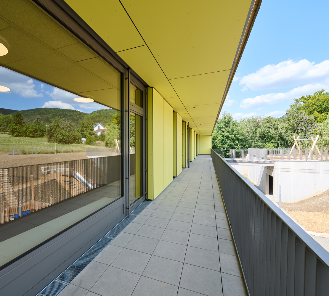 Gestaltung der Fassade am Rettungstunnel des ScheibengipfeltunnelsNeubau 3-gruppiger Kindergarten in Reutlingen